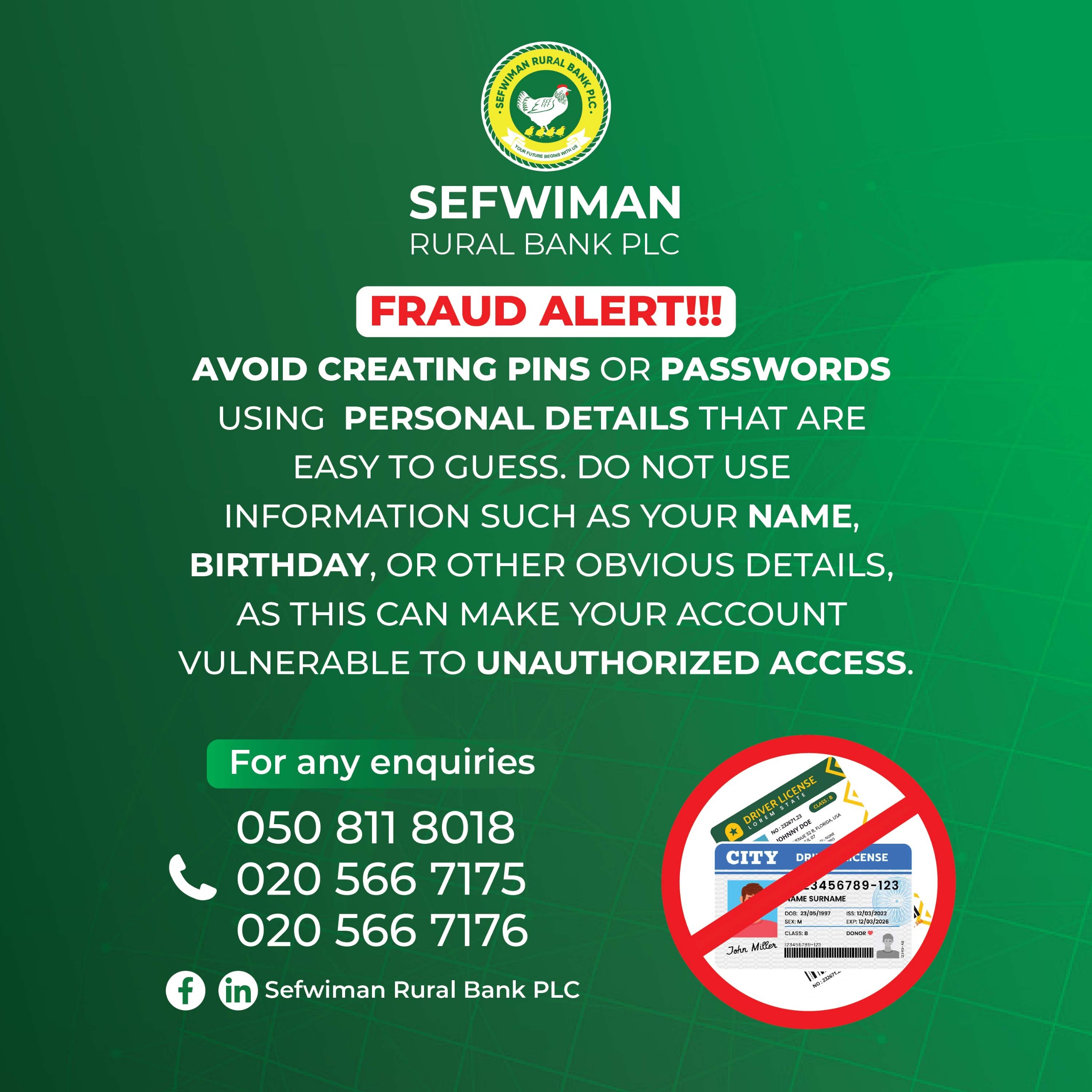 Sefwiman Rural Bank PLC received its Certificate to Commence Business on the 27th of October, 2005 with registration number CA-8121 and Banking License on the 13th of October, 2005. The Bank was re-registered on the 25th of November 2016 with a new registration number CS207882016.